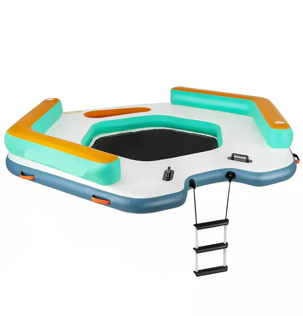 8.7FT Inflatable Floating Dock with Detachable Ladder & Mesh Swim Lounge